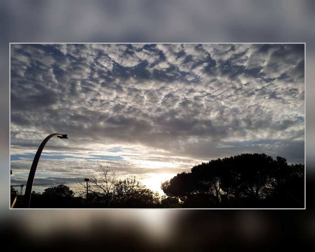 E mentre il sereno si narra all’orizzonte, nuove nubi, diverse, si avvicinano al tramonto. Nubi trascurate, frustrate, vorrebbero coprirne la bellezza. Ma possono solo farne parte, esserne ancelle, renderlo più bello. 😎☁️📷
